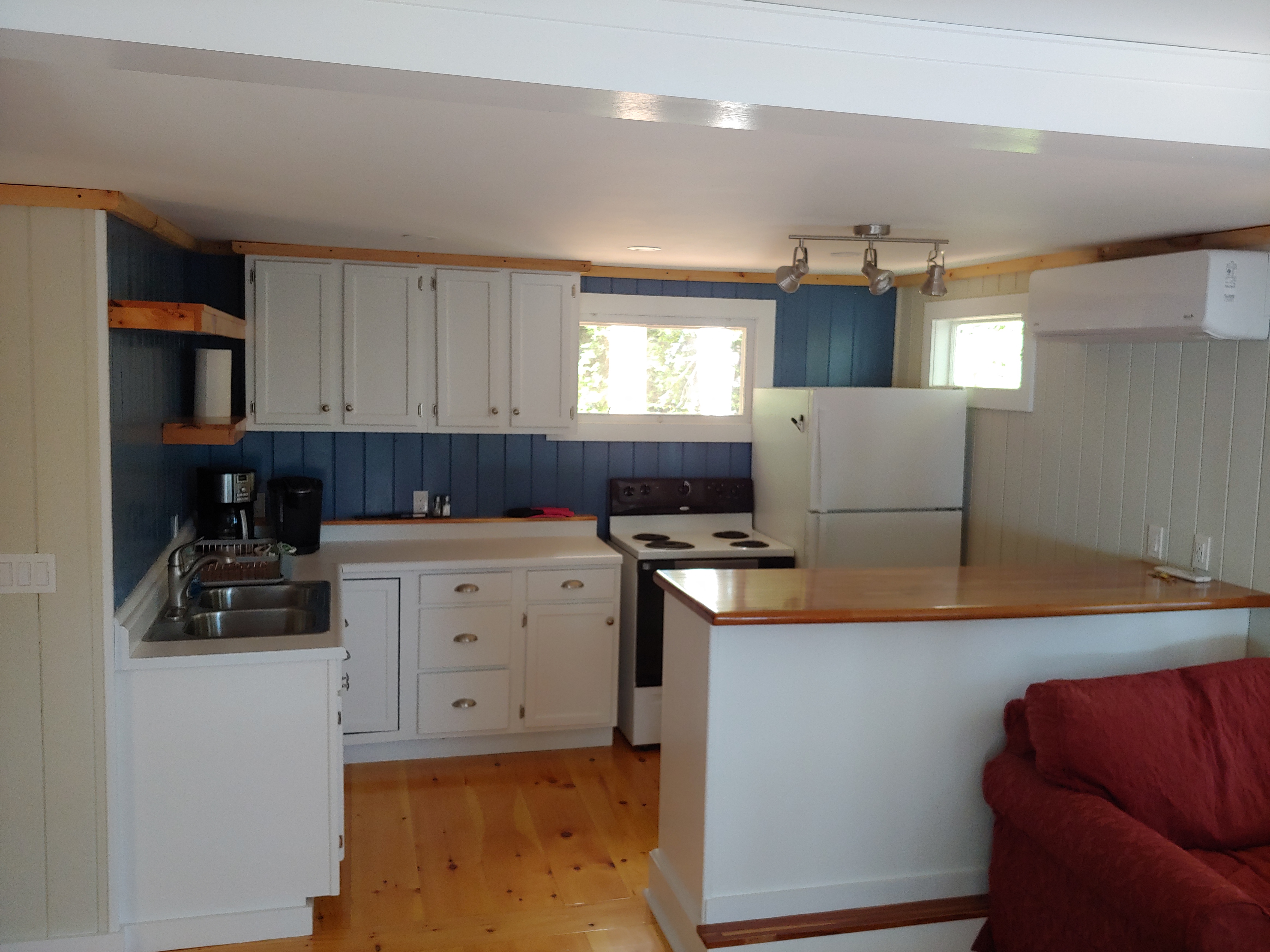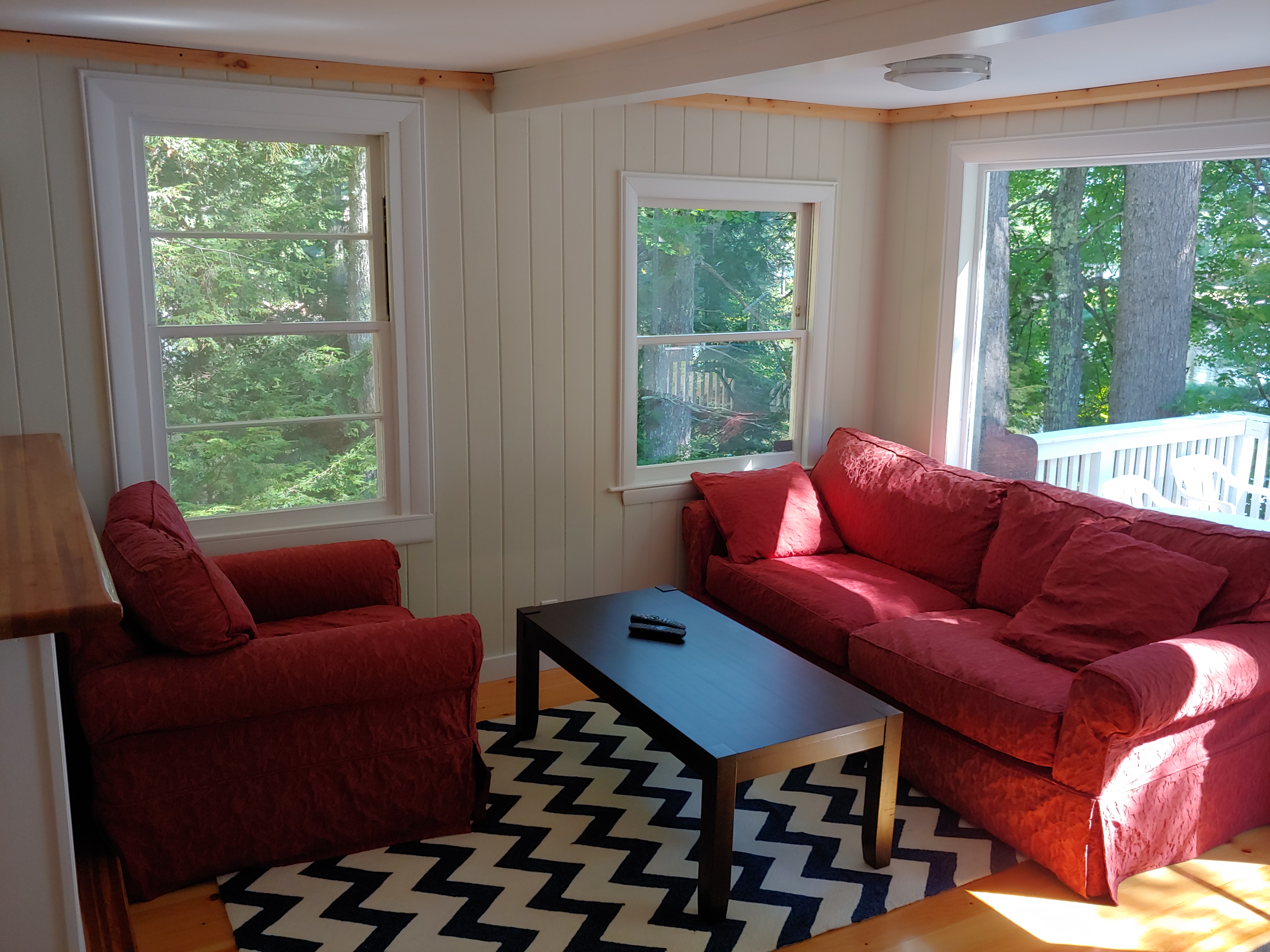 River's Edge is a 2 Bedroom Cabin located at 7 Webster Way in Sebago. It is right on the bank of the Northwest River, with views of the River & Sebago Lake. It has an open sitting area as well as a private spot right on the river. It sleeps up to 5 people, is equipped with a new Mini-Split AC unit and comes fully furnished for your enjoyment.