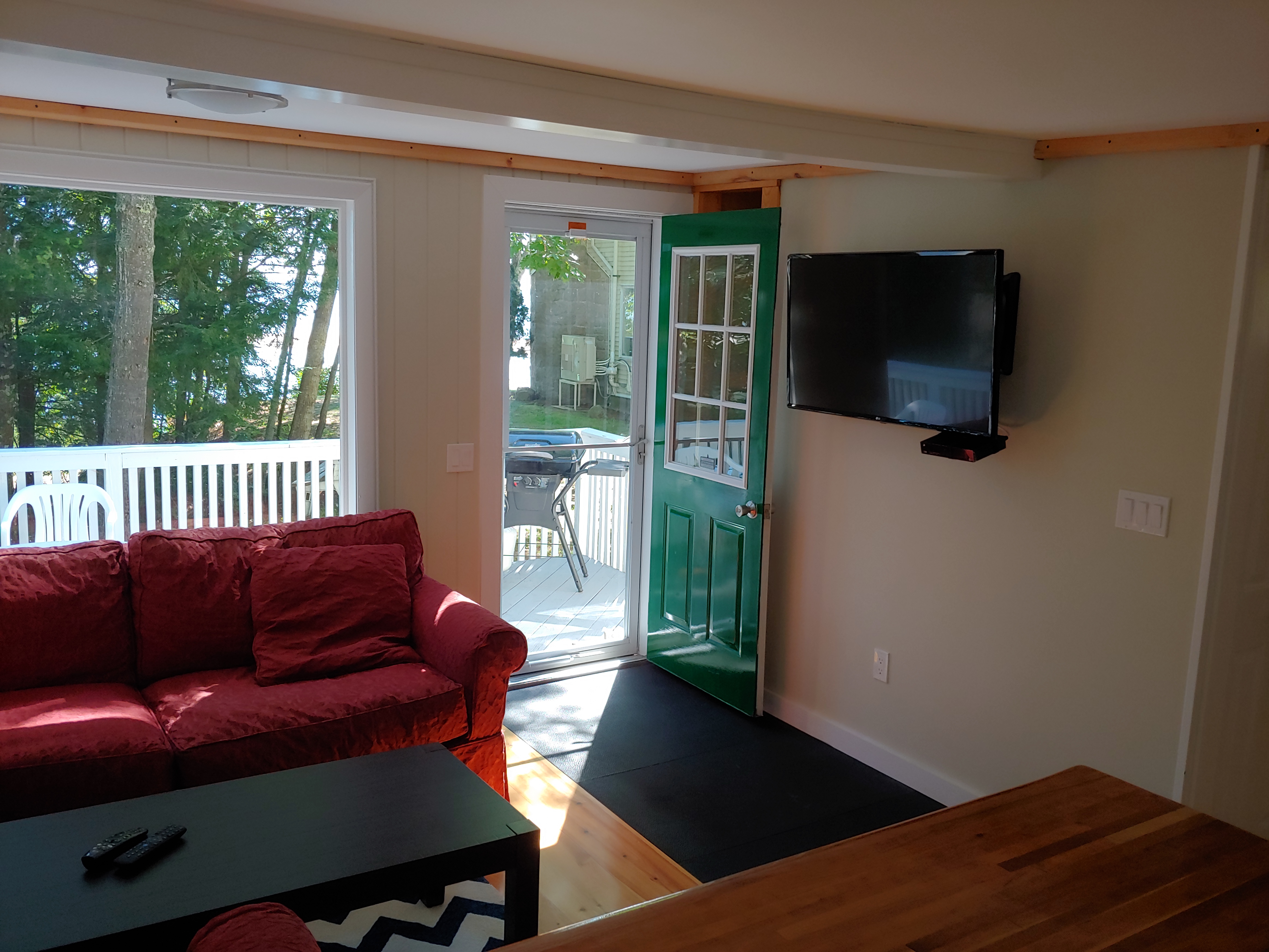 Rivers Edge is a 2 Bedroom Cabin located at 7 Webster Way in Sebago. It sleeps 4-5 guests comfortably. It has a large common room with a plenty of seating and a nicely appointed kitchen. The cabin is cooled via Mini-Split AC unit. The cabin is fully furnished, bedding, bath towels, and simple toiletries are included with your rental.